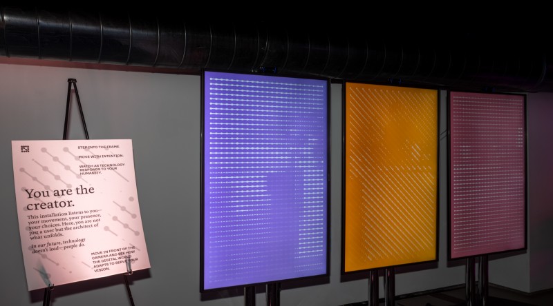 Throughout the space there were Lightbox Interactives such as the signature AI Cocktail generator and a motion sensing display for participants to play with their reflection. This interactive art piece reminded their members that they are creators. In a space where they are heard and seen, this piece reflected that narrative.